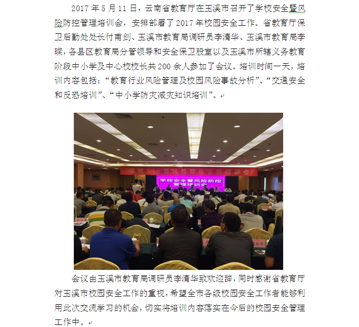 2017年玉溪市學校安全暨風險防控管理培訓會