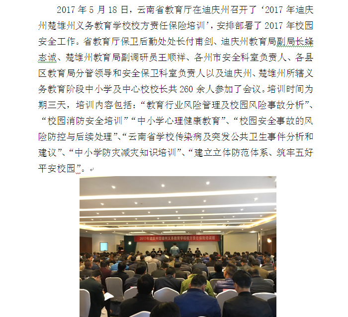 2017年迪慶州、楚雄州義務(wù)教育學(xué)校校方責(zé)任保險培訓(xùn)會