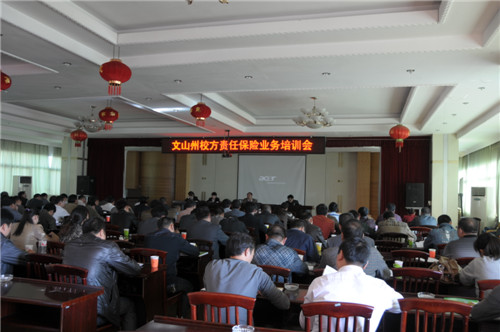 文山州校方責(zé)任保險(xiǎn)業(yè)務(wù)培訓(xùn)會在文山市海威爾酒店七樓會議室召開