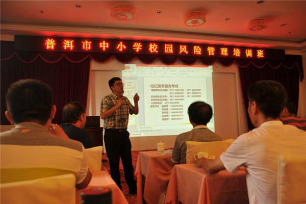 為認真貫徹落實《云南省教育廳關于舉辦中小學校園風險管理培訓班的通知》(云教函[2015]317號)文件精神,進一步加強普洱市學校安全教育和管理工作,切實提高基層學校風險防控的能力,于2015年8月25日舉辦了義務教育階段學校校園風險管理培訓班。我公司特邀請專業(yè)律師和保險專家,組成培訓小組,對參訓人員進行了培訓。專業(yè)律師和保險專家圍繞依法治校、安全管理方法、法律風險規(guī)避方法、教育風險及風險管理辦法、保險法等內(nèi)容展開了詳細的講解。我公司業(yè)務總監(jiān)羅琳對2014學年受理的校方責任保險案例作了詳盡的分析,并提出了相關風險管理建議。她指出,我省校園安全責任事故類型主要以意外傷害事故為主,因此加強安全與防范教育以及校園課間管理尤為重要?头苦嚂喳愒敿毥忉屃恕对颇鲜〗逃龔d等四部門關于加強學校保險工作的指導意見》(云教體[2014]26號)中所列的險種,并提出了相關建議。